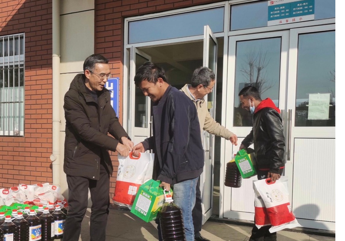 高武一行与来自孟加拉国、巴基斯坦和印度尼西亚的国际学生亲切交谈,详细了解了他们的学习、生活情况。他鼓励留校国际学生努力学习汉语和专业知识,传播中国文化,嘱咐他们寒假期间要遵守学校的疫情常态化防控管理规定,注意寒假和春节期间的安全,度过一个和谐、健康、快乐的春节。最后,高武、吴长湖和罗珊红为国际学生发放了大米、鸡蛋、菜籽油等春节慰问品。