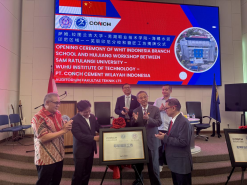 4月27日,芜湖职业技术学院校长高武和萨姆·拉图兰吉大学校长宋彼(Prof.Oktovian B.A Sompie),以及北苏拉威省秘书长史蒂夫(Steve Kepel)、北苏拉威省议会议长安迪(Fransiskus Andi Silangen)和海螺印尼区域总裁陈小兵共同为“徽匠工坊”(美娜多萨姆·拉图兰吉大学)正式投入使用揭牌,同时为芜湖职业技术学院印尼分校揭牌。高武校长围绕“服务职业教育出海,推广‘中文+职业技能’培训”,为印尼分校首届跨境电子商务专业的35名同学进行开班仪式讲话,激励同学们在实干奋斗中实现人生价值,成为专业素质高、中文能力强、具有国际视野和跨文化交际能力的国际化技术技能人才。揭牌仪式结束后,我校国家级职业教育教师创新团队负责人万鸾飞教授在“徽匠工坊”开展首期培训课程,讲解PLC智能实训系统设备。培训课程为我校“职教出海”标志性成果,由我校自主研发、具有独立知识产权,围绕企业共建的PLC智能实训系统设备开展,重点讲解PLC电气控制系统设计。