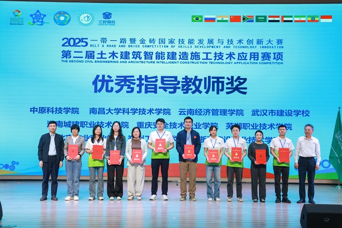 “一带一路暨金砖国家技能发展与技术创新大赛”是由金砖国家工商理事会中方理事会、一带一路暨金砖国家技能发展国际联盟等联合主办的国际级赛事。此次第二届土木建筑智能建造施工技术应用赛项决赛吸引了全国包括本科、高职和中职在内的800余所院校、近6000名师生参与选拔,最终298支队伍入围决赛。本次竞赛内容主要包括市政工程专业知识问答与识图竞赛模块、施工方案编制与碳排放计算竞赛模块、智能建造虚拟施工竞赛模块,全面考核选手在数字化施工方案优化、智能管控、绿色低碳技术应用等方面的核心能力,不仅是院校技能教学成果的检验平台,更是金砖国家及“一带一路”沿线国家在智能建造领域交流合作的重要纽带。